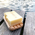 Seifen- und Wasserreste werden in den Holzrillen aufgefangen, sodass die Stückseife stets trocken liegt.